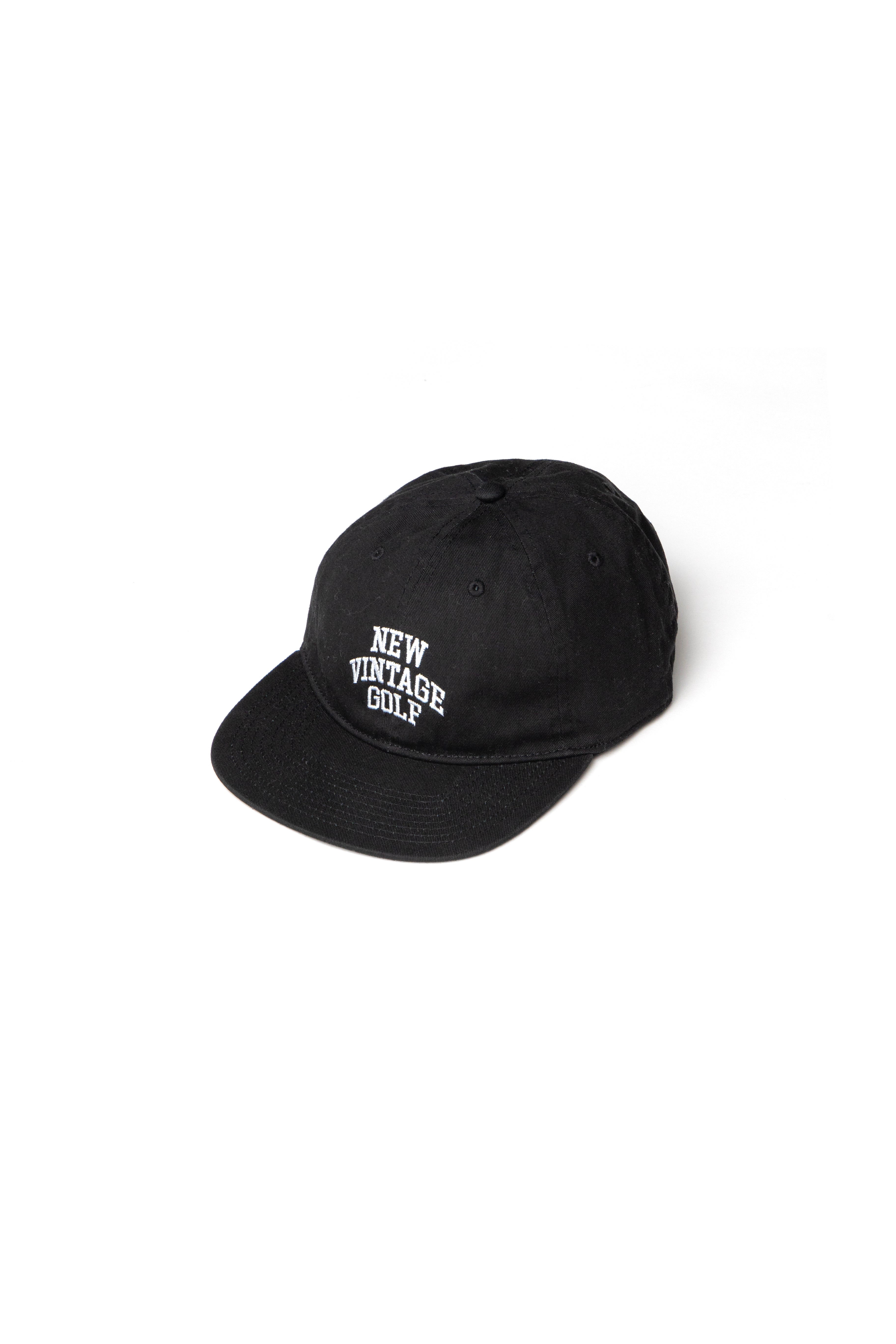 NEW VINTAGE GOLFのオリジナルロゴを刺繍した6パネルキャップ。