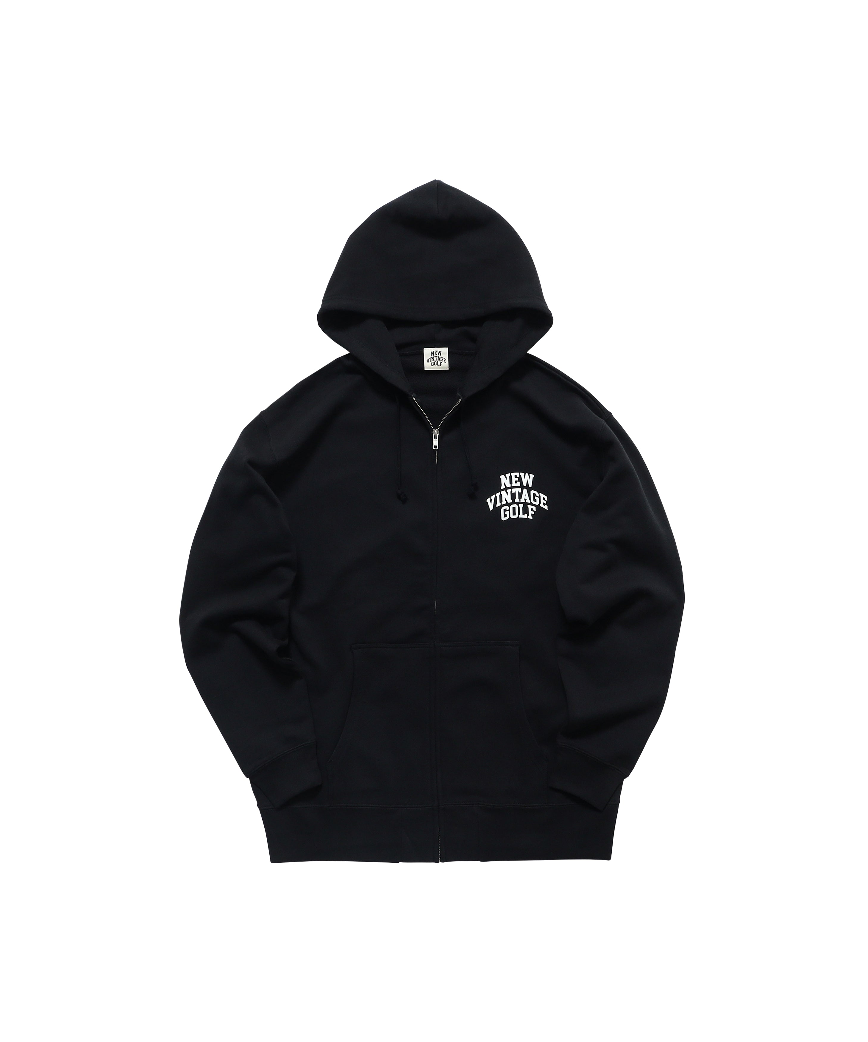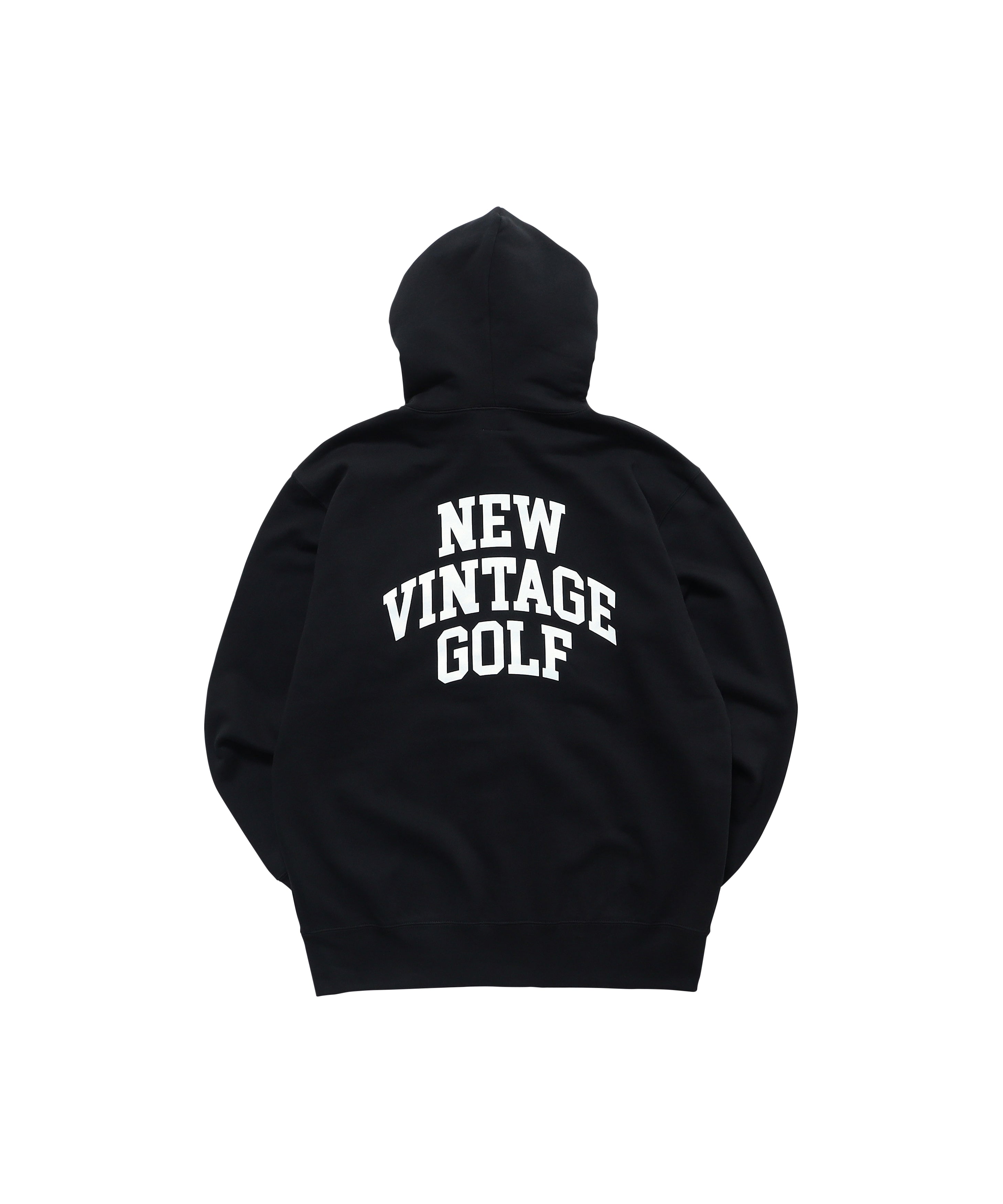 NEW VINTAGE GOLFの3段アーチロゴを前後にプリントしたフルジップスウェットフーディです。